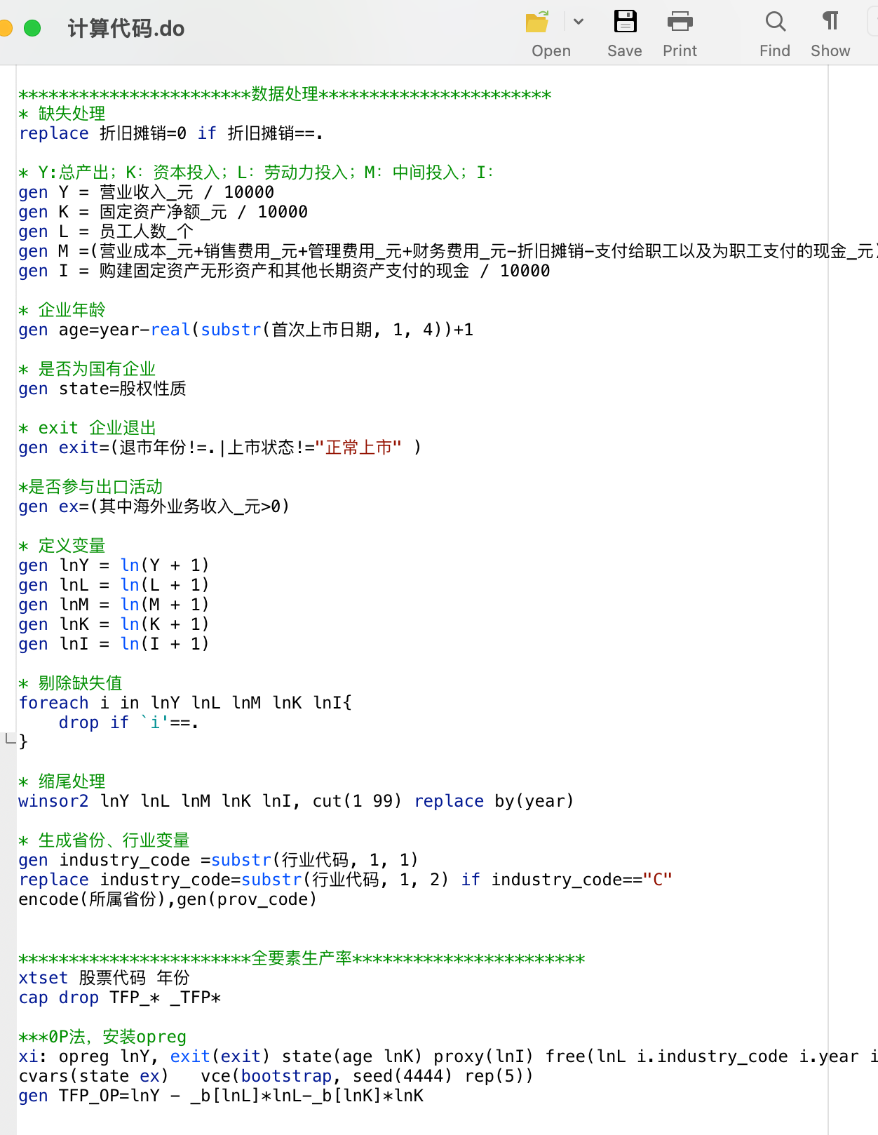 参考鲁晓东(2012)等人的做法,利用5种方法计算1999-2023年制造业企业的全要素生产率,并提供对应的dofile,供大家核对和参考。