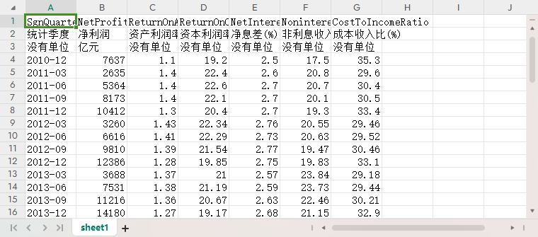 商业银行效益性指标统计表(法人)(季)2010-2023净利润资产利润率资本利润率净息差非利息收入占比成本收入比