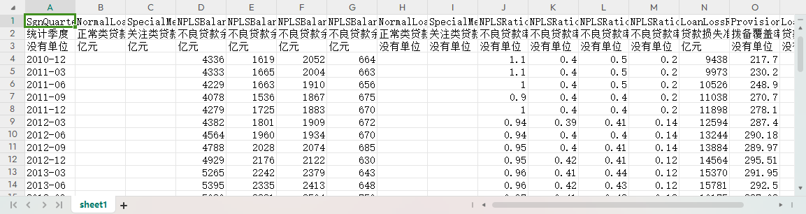 统计季度 正常类贷款 关注类贷款 不良贷款余额 不良贷款余额:次级贷款 不良贷款余额:可疑贷款 不良贷款余额:损失贷款 正常类贷款占比(%) 关注类贷款占比(%) 不良贷款率(%) 不良贷款率:次级贷款(%) 不良贷款率:可疑贷款(%) 不良贷款率:损失贷款(%) 贷款损失准备 拨备覆盖率(%) 贷款拨备率(%)