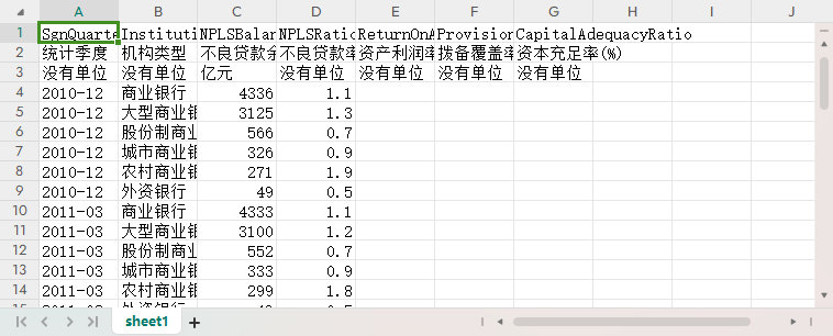 统计季度 机构类型 不良贷款余额 不良贷款率(%) 资产利润率(%) 拨备覆盖率(%) 资本充足率(%)