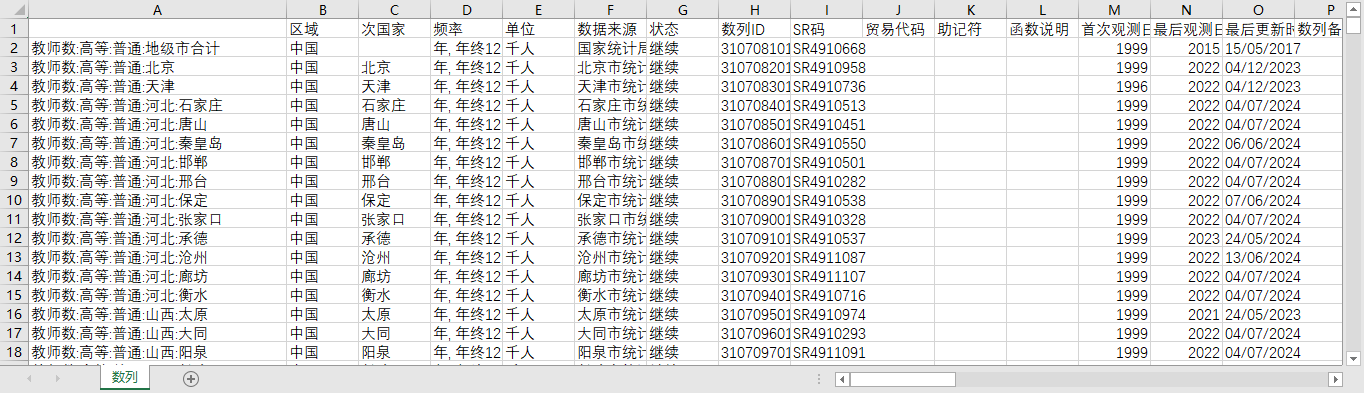 全国各地级市城市高等教育普通中学学校数在校生数毕业生数学生数教师数1997-2023