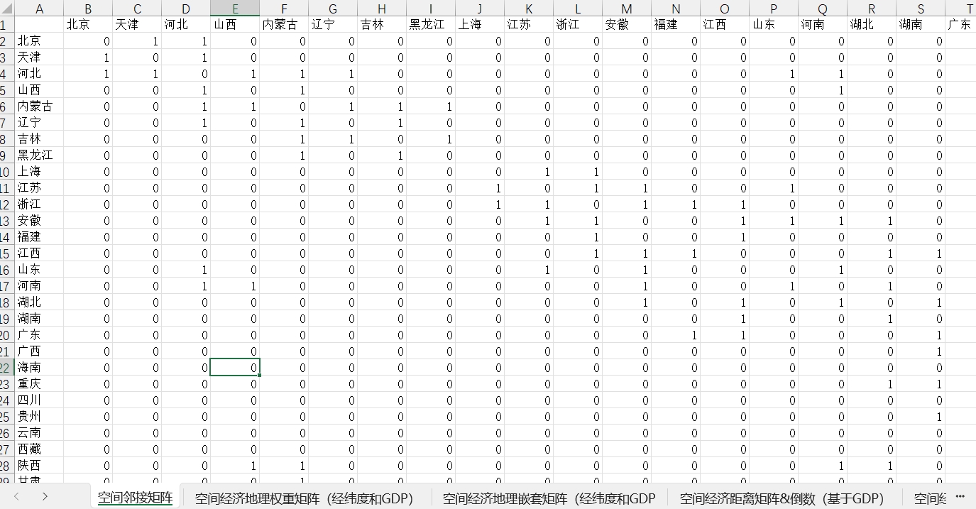 31个省市的邻接矩阵、地理矩阵和经济地理空间矩阵0(1).xlsx