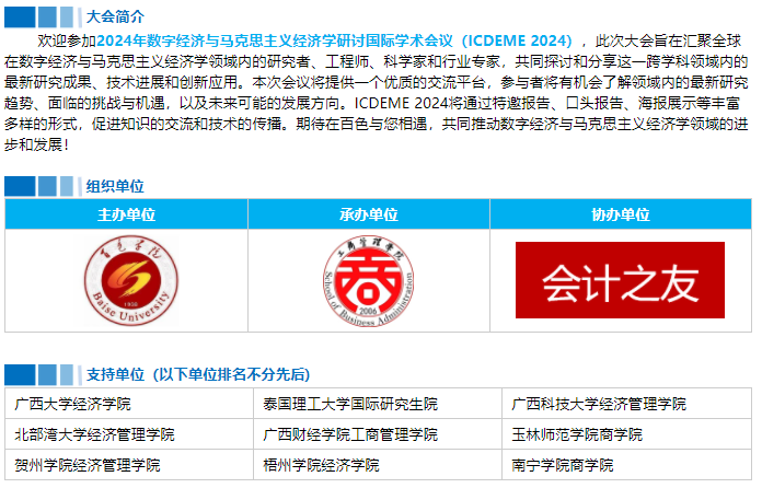 【百色学院主办】2024年数字经济与马克思主义经济学研讨国际学术会议(ICDEME 2024)