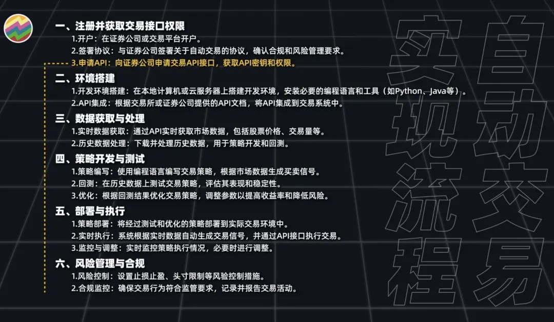 其中最核心的环节是申请自动交易的API接口,开通接口后你才能实现后续所有功能。