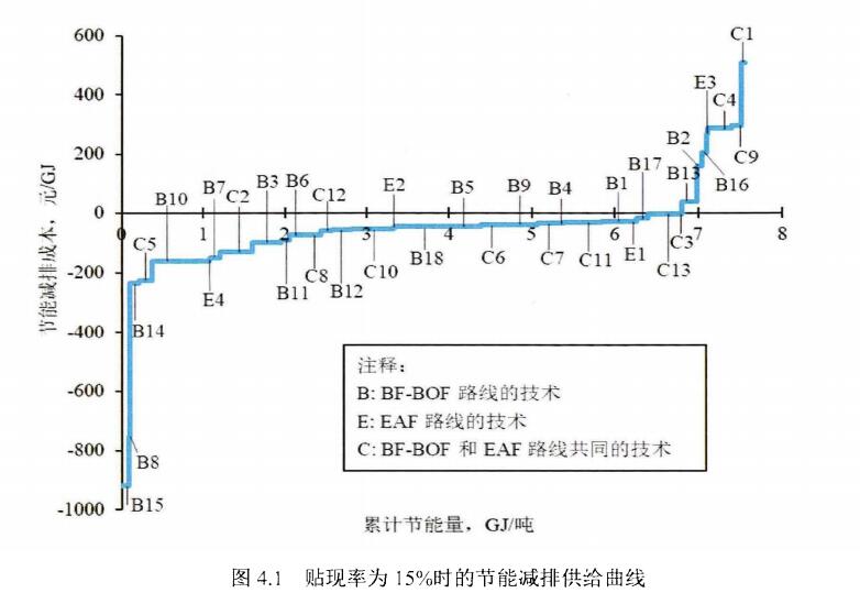 如图所示,纵坐标显示节能减排成本,横坐标的首尾相减表示节能量