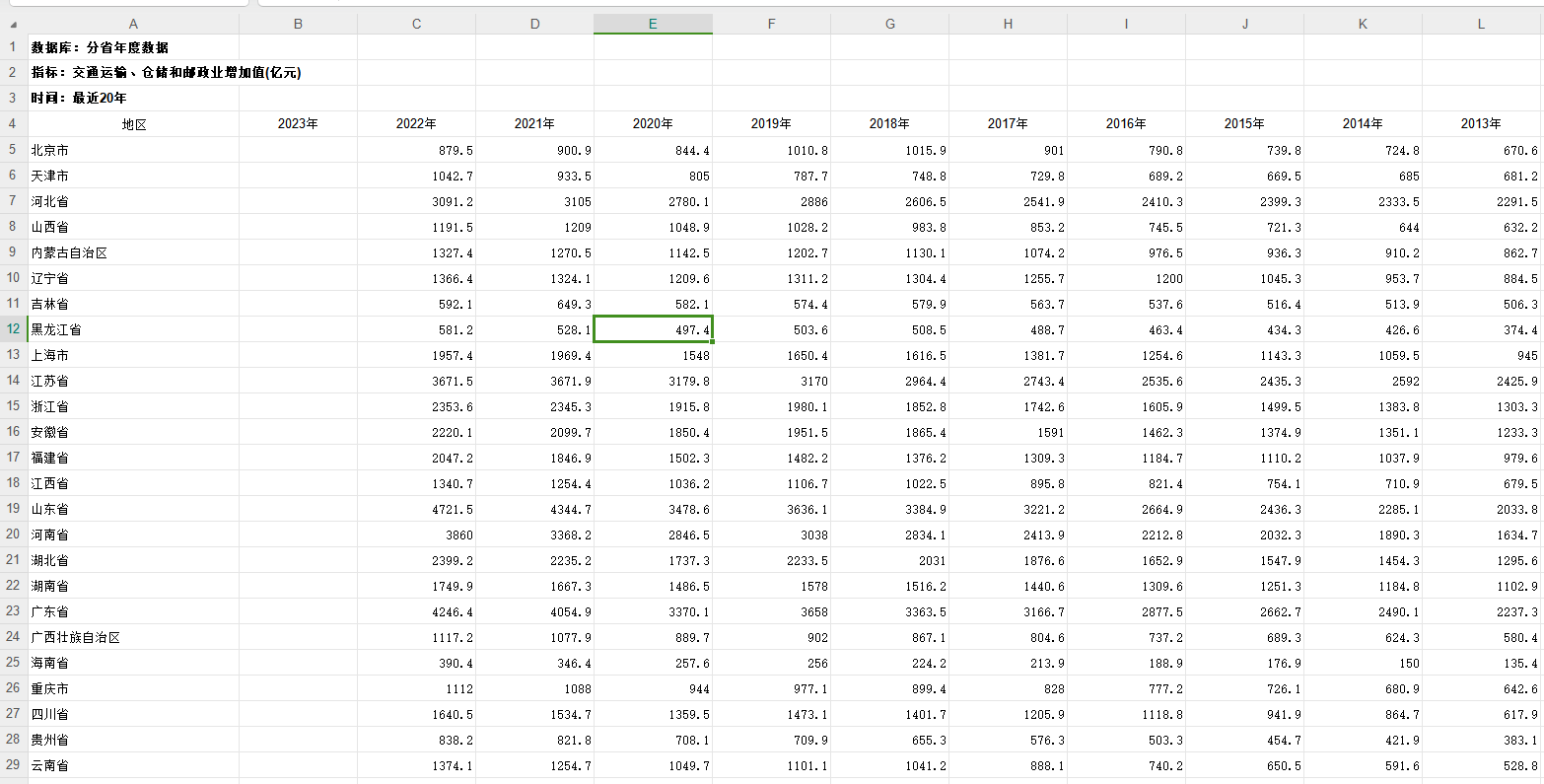 交通运输、仓储和邮政业增加值(亿元).xls 大小:(27.5 KB) 只需: RMB 8元 马上下载