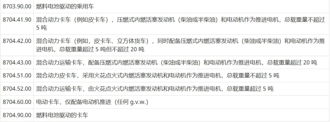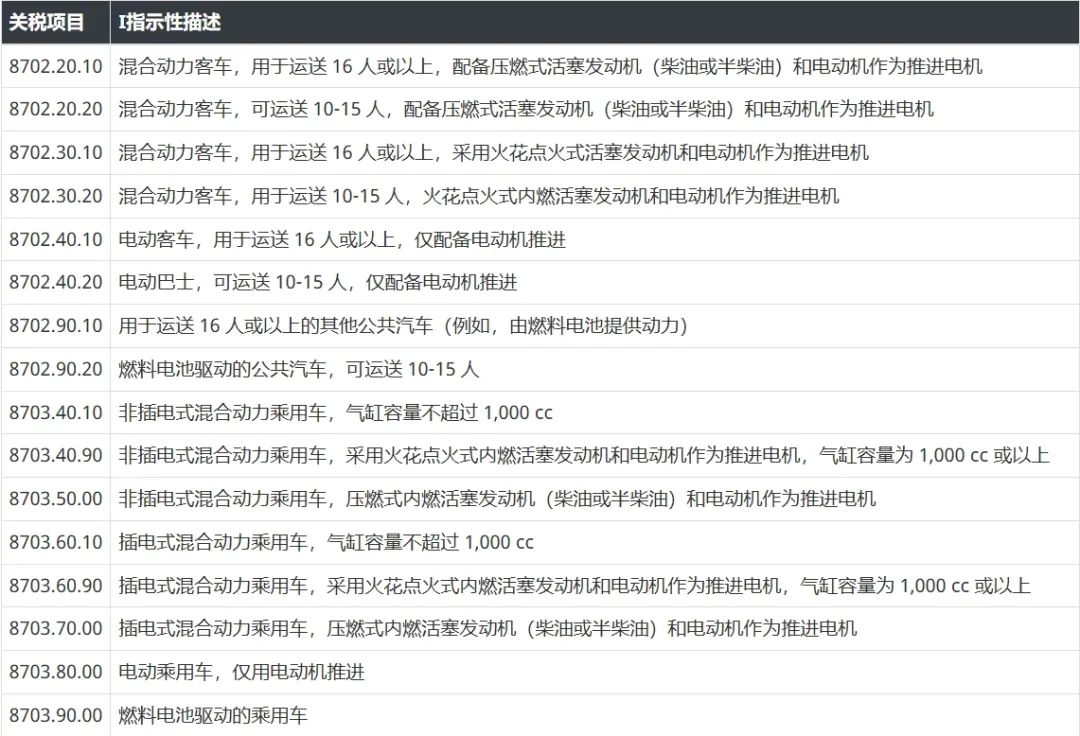 电动汽车加征关税产品清单,具体详见下图: