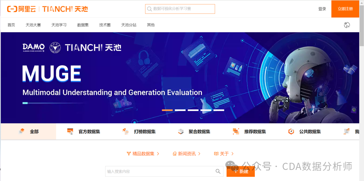网址:https://tianchi.aliyun.com/Kaggle的项目都是英文的,有的小伙伴可能觉得英文看起来太费劲,阿里天池的项目全是中文的,阅读无障碍。