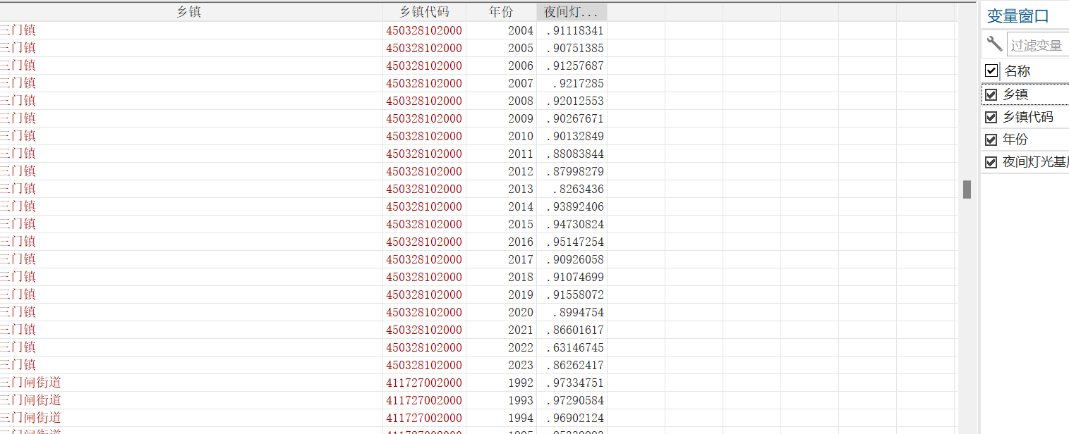 2. **地理边界数据**:为了将夜间灯光强度分配给特定行政区划,你需要获取中国各省份、城市、区县和乡镇的地理边界数据。这些可以是矢量形状文件或栅格格式的数据。