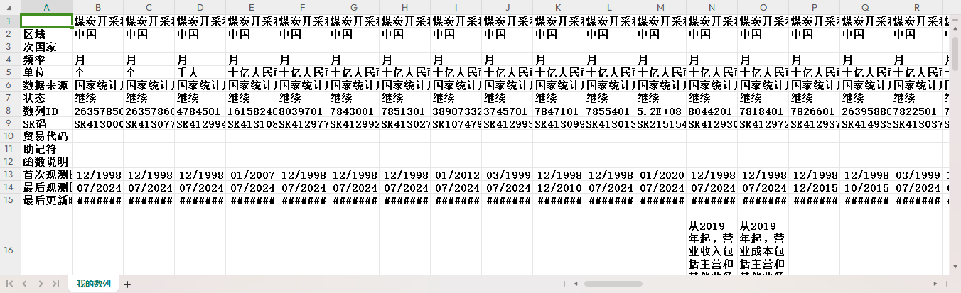 财务指标全国行业采矿业煤炭开采和洗选业1998-202407月度数据工业销售产值增加值出口交货值产品销售率利税总额等