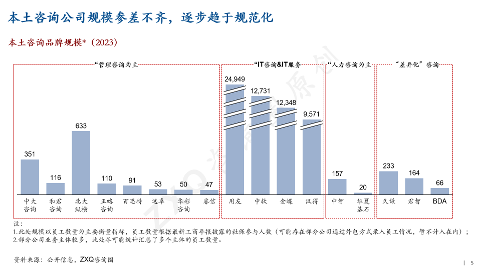咨询公司人员规模数据基于可获取的、工商年报公开披露的社保参与人数,基本可以采信(部分公司数据可能不完全准确,但此处尽可能合并了多个主体的数据,并基于历史数据进行了适度修订)。