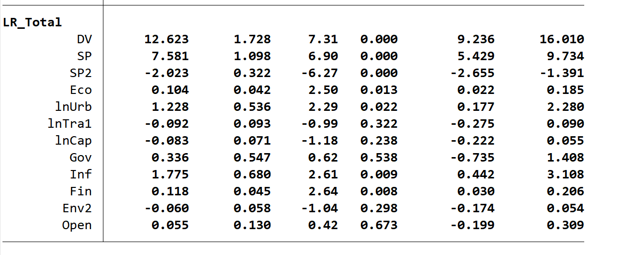 动态空间杜宾回归结果如下:被解释变量H3,核心解释变量DV、SP,SP引入了二次项