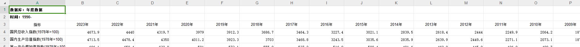 国内生产总值指数1990-2023年