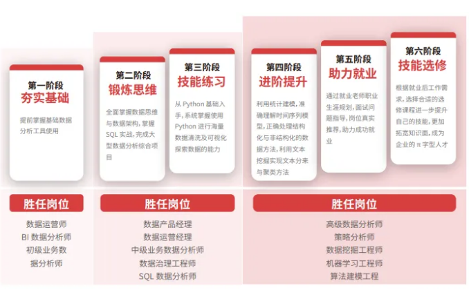 除了优质师资团队外,我们还提供班主任和助教答疑服务、职业规划团队的指导,为您顺利进入企业就业铺平道路。无论您是零基础学生、转行人士,还是已从事数据相关工作多年的专业人士,我们都欢迎您的加入。立即踏上数据分析之旅,掌握数据在各行业的应用,提升数字化工作效率,实现个人职业发展的新突破。快来报名吧,迎接挑战,赢得未来的辉煌!