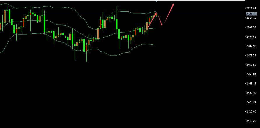 黄金形成了早间上升的格局,这就出现分化点,早间低点后上升,这种走势中,分水岭早间低点,按照双双原则,分水岭不能破。所以,继续看涨,那么午后调整的幅度不会过大,太大就变形了。按照小时线大阳来说,今日日内做多的位置在2510一线。