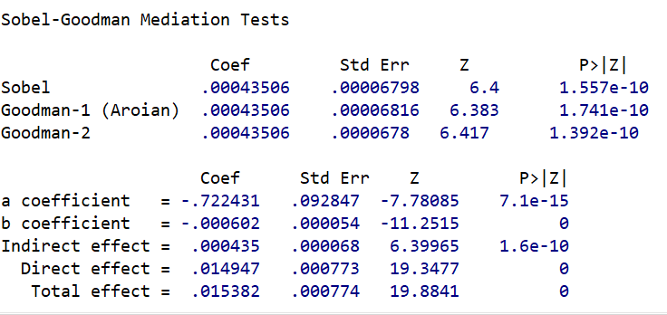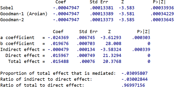 请问如何解读这个sobel检验的结果
