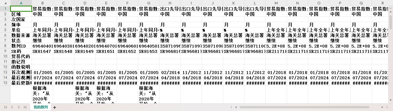 贸易指数:同比:价值:出口:HS2 贸易指数:同比:数量:出口:HS2 贸易指数:同比:价格:出口:HS2 贸易指数:同比:价值:进口:HS2 贸易指数:同比:数量:进口:HS2 贸易指数:同比:价格:进口:HS2 出口先导指数 出口先导指数:出口经理人指数 出口先导指数:新增出口订单指数 出口先导指数:出口经理人信心指数 出口先导指数:出口企业综合成本指数 贸易指数:环比:价格:出口:HS2 贸易指数:环比:数量:出口:HS2 贸易指数:环比:价值:出口:HS2 贸易指数:环比:价格:进口:HS2 贸易指数:环比:数量:进口:HS2 贸易指数:环比:价值:进口:HS2