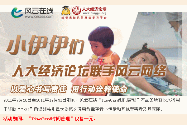 服务有限公司,将风云网络在企业微博上发起的“一元”行动带到人大经济论坛,为那些和小伊伊一样的生命奇迹献出绵薄之力。
