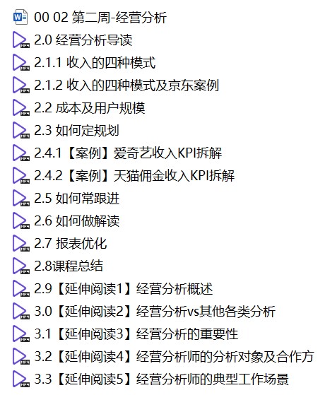 在「经营分析」这一模块中,通常会涵盖以下关键主题和技能: