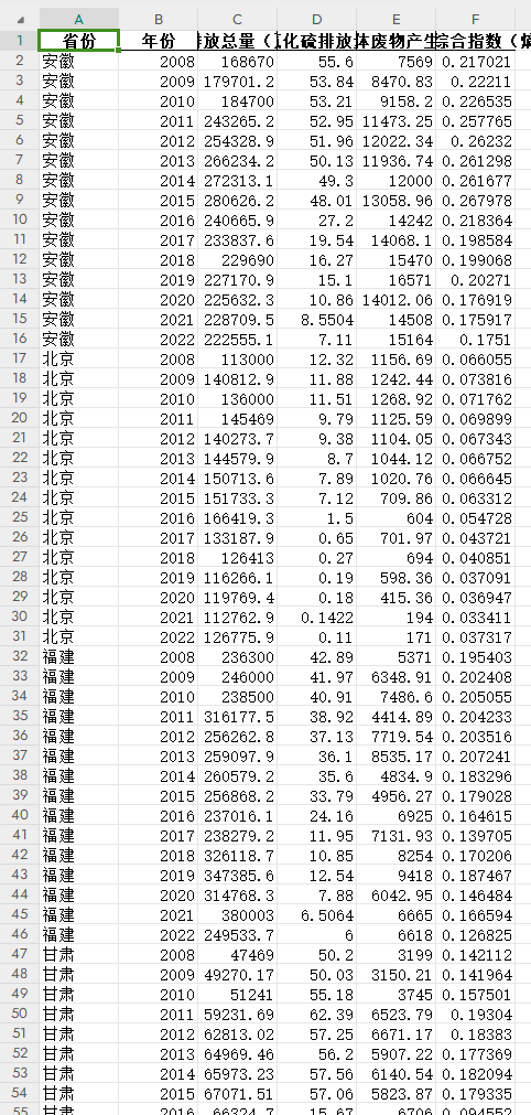 数据文件中国各省环境污染指数(原始数据、结果)(2008-2022年).xlsx