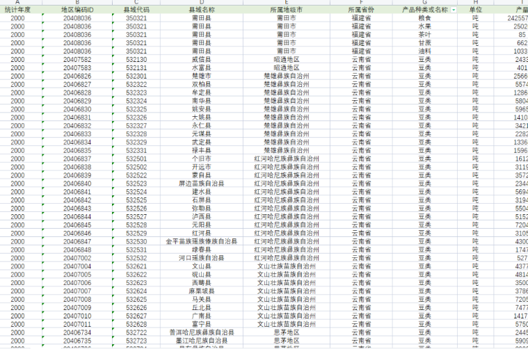 二、2000+县区常见农产品产量面板数据(2000-2022年)