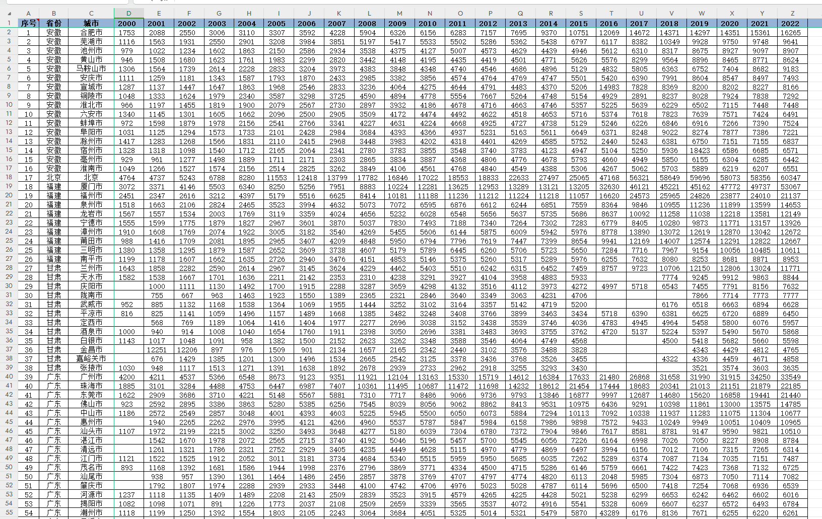 数据缺失:西北地区部分城市的早期年份数据缺失,其他地区个别城市存在个别年份数据缺失!数据完整度97%以上!