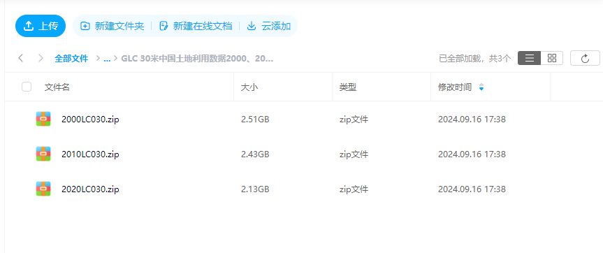 包括中国区域2000,2010,2020三年完整的数据,每年53个图幅,tif格式,UTM投影,分辨率30米