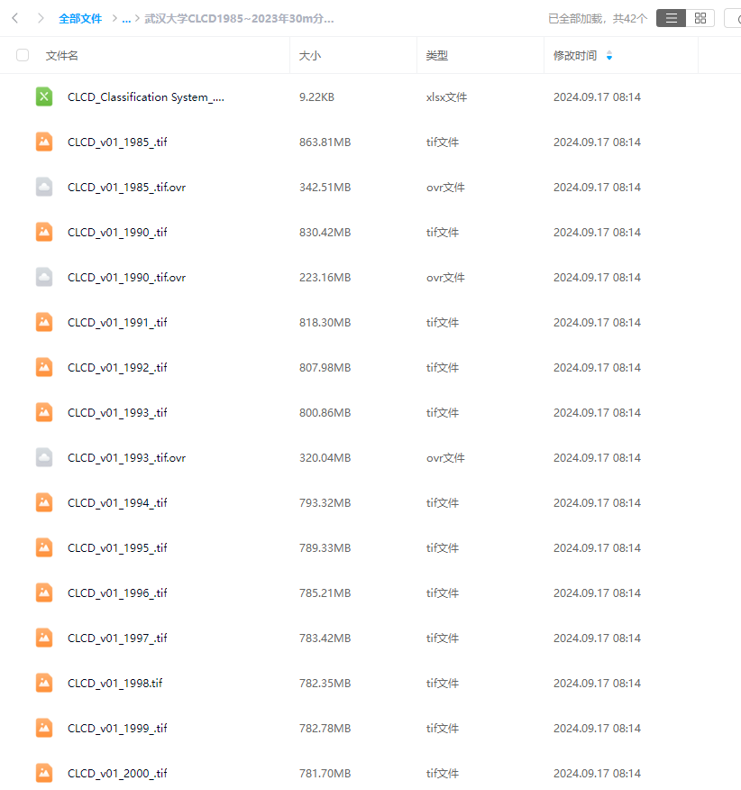 1985-2023所有数据】 逐年30m土地利用数据 CLCD数据 武汉大学