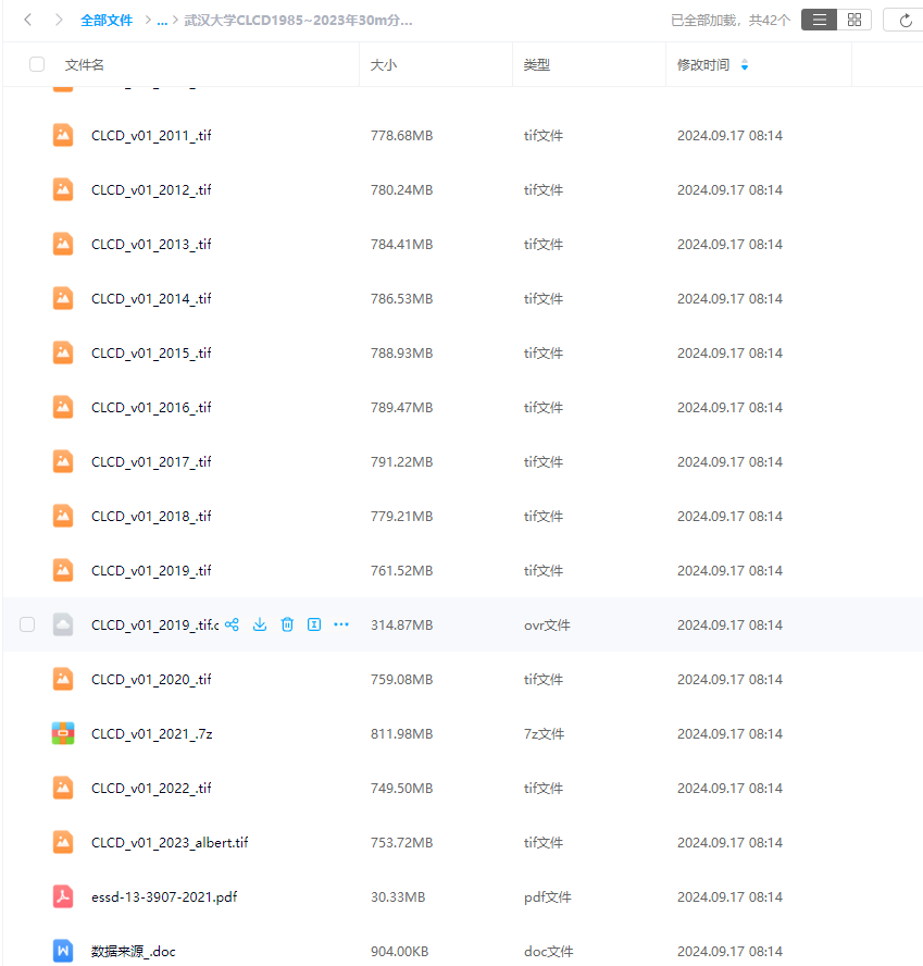 1. 数据名称:武汉大学CLCD土地利用数据/土地覆盖数据