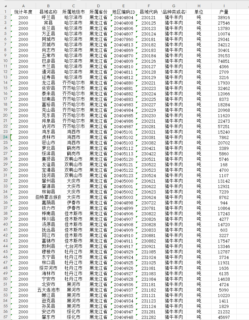 [color=rgba(0, 0, 0, 0.9)]指标:县域代码、县域名称、所属地级市、所属省份、产品种类或名称、单位、产量