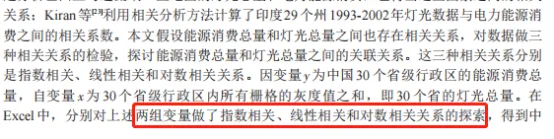 通过我们得到的各省市夜间灯光数据于从统计年鉴上得到的各省能源数据,参考文献的做法,对二者做指数相关、线性相关和对数相关关系的探索