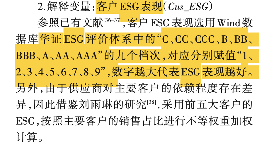 参考《经济问题》中李普玲(2024)的做法,将供应商与主要客户数据对应起来,并对上市公司及关联上市公司的ESG数据进行匹配,形成“供应商——客户ESG”的数据集,保留客户的销售占比。
