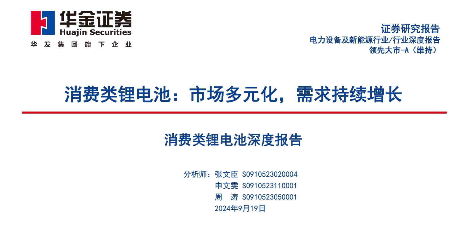 【华金证券】消费类锂电池:市场多元化,需求持续增长