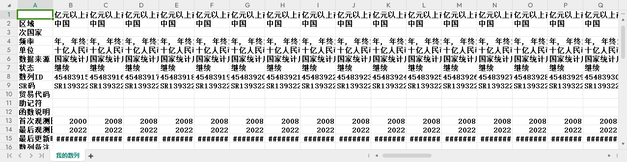 亿元以上商品交易市场:成交额:批发 亿元以上商品交易市场:成交额:批发:综合市场 亿元以上商品交易市场:成交额:批发:生产资料综合市场 亿元以上商品交易市场:成交额:批发:工业消费品综合市场 亿元以上商品交易市场:成交额:批发:农产品综合市场 亿元以上商品交易市场:成交额:批发:其他综合市场 亿元以上商品交易市场:成交额:批发:专业市场 亿元以上商品交易市场:成交额:批发:生产资料市场 亿元以上商品交易市场:成交额:批发:农业生产用具市场 亿元以上商品交易市场:成交额:批发:农用生产资料市场 亿元以上商品交易市场:成交额:批发:煤炭市场 亿元以上商品交易市场:成交额:批发:木材市场 亿元以上商品交易市场:成交额:批发:建材市场 亿元以上商品交易市场:成交额:批发:化工材料及制品市场 亿元以上商品交易市场:成交额:批发:金属材料市场 亿元以上商品交易市场:成交额:批发:机械设备市场 亿元以上商品交易市场:成交额:批发:其他生产资料市场 亿元以上商品交易市场:成交额:批发:农产品市场 亿元以上商品交易市场:成交额:批发:粮油市场 亿元以上商品交易市场:成交额:批发:肉禽蛋市场 亿元以上商品交易市场:成交额:批发:水产品市场 亿元以上商品交易市场:成交额:批发:蔬菜市场 亿元以上商品交易市场:成交额:批发:干鲜果品市场 亿元以上商品交易市场:成交额:批发:棉麻土畜、烟叶市场 亿元以上商品交易市场:成交额:批发:其他农产品市场 亿元以上商品交易市场:成交额:批发:食品、饮料及烟酒市场 亿元以上商品交易市场:成交额:批发:食品饮料市场 亿元以上商品交易市场:成交额:批发:茶叶市场 亿元以上商品交易市场:成交额:批发:烟酒市场 亿元以上商品交易市场:成交额:批发:其他食品饮料及烟酒市场 亿元以上商品交易市场:成交额:批发:纺织、服装、鞋帽市场 亿元以上商品交易市场:成交额:批发:布料及纺织品市场 亿元以上商品交易市场:成交额:批发:服装市场 亿元以上商品交易市场:成交额:批发:鞋帽市场 亿元以上商品交易市场:成交额:批发:其他纺织服装鞋帽市场 亿元以上商品交易市场:成交额:批发:日用品及文化用品市场 亿元以上商品交易市场:成交额:批发:小商品市场 亿元以上商品交易市场:成交额:批发:箱包市场 亿元以上商品交易市场:成交额:批发:玩具市场 亿元以上商品交易市场:成交额:批发:文具市场 亿元以上商品交易市场:成交额:批发:图书、报刊杂志市场 亿元以上商品交易市场:成交额:批发:音像制品及电子出版物市场 亿元以上商品交易市场:成交额:批发:体育用品市场 亿元以上商品交易市场:成交额:批发:其他日用品及文化用品市场 亿元以上商品交易市场:成交额:批发:黄金、珠宝、玉器等首饰市场 亿元以上商品交易市场:成交额:批发:电器、通讯器材、电子设备市场 亿元以上商品交易市场:成交额:批发:家电市场 亿元以上商品交易市场:成交额:批发:通讯器材市场 亿元以上商品交易市场:成交额:批发:照相、摄像器材市场 亿元以上商品交易市场:成交额:批发:计算机及辅助设备市场 亿元以上商品交易市场:成交额:批发:其他电器、通讯器材、电子设备市场 亿元以上商品交易市场:成交额:批发:医药、医疗用品及器材市场 亿元以上商品交易市场:成交额:批发:中药材市场 亿元以上商品交易市场:成交额:批发:其他医药、医疗用品及器材市场 亿元以上商品交易市场:成交额:批发:家具、五金及装饰材料市场 亿元以上商品交易市场:成交额:批发:家具市场 亿元以上商品交易市场:成交额:批发:装饰材料市场 亿元以上商品交易市场:成交额:批发:灯具市场 亿元以上商品交易市场:成交额:批发:厨具、盥洗设备市场 亿元以上商品交易市场:成交额:批发:五金材料市场 亿元以上商品交易市场:成交额:批发:其他装修市场 亿元以上商品交易市场:成交额:批发:汽车、摩托车及零配件市场 亿元以上商品交易市场:成交额:批发:汽车市场 亿元以上商品交易市场:成交额:批发:摩托车市场 亿元以上商品交易市场:成交额:批发:机动车零配件市场 亿元以上商品交易市场:成交额:批发:花、鸟、鱼、虫市场 亿元以上商品交易市场:成交额:批发:花卉市场 亿元以上商品交易市场:成交额:批发:观赏鱼市场 亿元以上商品交易市场:成交额:批发:其他花鸟鱼虫市场 亿元以上商品交易市场:成交额:批发:旧货市场 亿元以上商品交易市场:成交额:批发:古玩、古董、字画市场 亿元以上商品交易市场:成交额:批发:邮票、硬币市场 亿元以上商品交易市场:成交额:批发:其他旧货市场 亿元以上商品交易市场:成交额:批发:其他专业市场