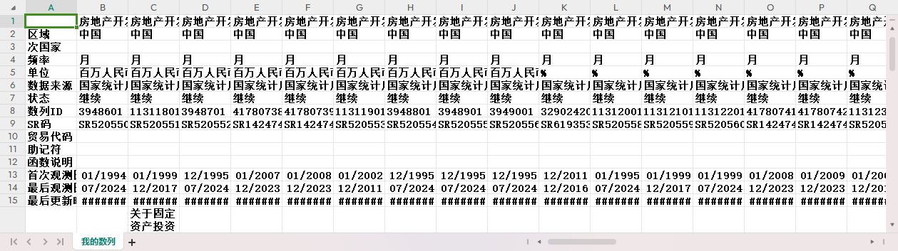 房地产开发投资:累计 房地产开发投资:累计:其中:国有及国有控股 房地产开发投资:累计:住宅 房地产开发投资:累计:住宅:90平方米及以下 房地产开发投资:累计:住宅:144平方米以上 房地产开发投资:累计:住宅:经济适用房 房地产开发投资:累计:办公楼 房地产开发投资:累计:商业营业用房 房地产开发投资:累计:其它商品房屋 房地产开发投资:累计同比(扣除价格因素) 房地产开发投资:累计同比 房地产开发投资:累计同比:其中:国有及国有控股 房地产开发投资:累计同比:住宅 房地产开发投资:累计同比:住宅:90平方米及以下 房地产开发投资:累计同比:住宅:144平方米以上 房地产开发投资:累计同比:住宅:经济适用房 房地产开发投资:累计同比:办公楼 房地产开发投资:累计同比:商业营业用房 房地产开发投资:累计同比:其它商品房屋 房地产开发投资:累计:建筑安装工程 房地产开发投资:累计:建筑安装工程:建筑 房地产开发投资:累计:建筑安装工程:安装 房地产开发投资:累计:设备工器具购置 房地产开发投资:累计:其它费用 房地产开发投资:累计:其它费用:土地购置费 房地产开发投资:累计同比:建筑安装工程:建筑 房地产开发投资:累计同比:建筑安装工程:安装 房地产开发投资:累计同比:设备工器具购置 房地产开发投资:累计同比:其它费用 房地产开发投资:累计同比:其它费用:土地购置费 土地成交价款:累计 (DC)房地产开发投资:累计:内资企业 (DC)房地产开发投资:累计:港澳台商投资企业 (DC)房地产开发投资:累计:外商投资企业 (DC)房地产开发投资:累计:个体经营 (DC)房地产开发投资:累计同比:内资企业 (DC)房地产开发投资:累计同比:港澳台商投资企业 (DC)房地产开发投资:累计同比:外商投资企业 (DC)房地产开发投资:累计同比:个体经营 房地产开发投资:累计:计划总投资 房地产开发投资:累计:新增固定资产 房地产开发投资:累计:各项应付款 房地产开发投资:累计:各项应付款:工程款 房地产开发投资:累计同比:计划总投资 房地产开发投资:累计同比:新增固定资产 房地产开发投资:资金来源:累计 房地产开发投资:资金来源:累计:上年末结余资金 房地产开发投资:资金来源:累计:本年资金来源 房地产开发投资:资金来源:累计:国家预算内资金 房地产开发投资:资金来源:累计:国内贷款 房地产开发投资:资金来源:累计:国内贷款:银行贷款 房地产开发投资:资金来源:累计:国内贷款:非银行金融机构贷款 房地产开发投资:资金来源:累计:债券 房地产开发投资:资金来源:累计:利用外资 房地产开发投资:资金来源:累计:利用外资:外商直接投资 房地产开发投资:资金来源:累计:自筹资金 房地产开发投资:资金来源:累计:自筹资金:自有资金 房地产开发投资:资金来源:累计:定金及预收款 房地产开发投资:资金来源:累计:个人按揭贷款 房地产开发投资:资金来源:累计:其他资金 房地产开发投资:资金来源:累计同比 房地产开发投资:资金来源:累计同比:上年末结余资金 房地产开发投资:资金来源:累计同比:本年资金来源 房地产开发投资:资金来源:累计同比:国家预算内资金 房地产开发投资:资金来源:累计同比:国内贷款 房地产开发投资:资金来源:累计同比:国内贷款:银行贷款 房地产开发投资:资金来源:累计同比:国内贷款:非银行金融机构贷款 房地产开发投资:资金来源:累计同比:债券 房地产开发投资:资金来源:累计同比:利用外资 房地产开发投资:资金来源:累计同比:利用外资:外商直接投资 房地产开发投资:资金来源:累计同比:自筹资金 房地产开发投资:资金来源:累计同比:自筹资金:自有资金 房地产开发投资:资金来源:累计同比:定金及预收款 房地产开发投资:资金来源:累计同比:个人按揭贷款 房地产开发投资:资金来源:累计同比:其他资金