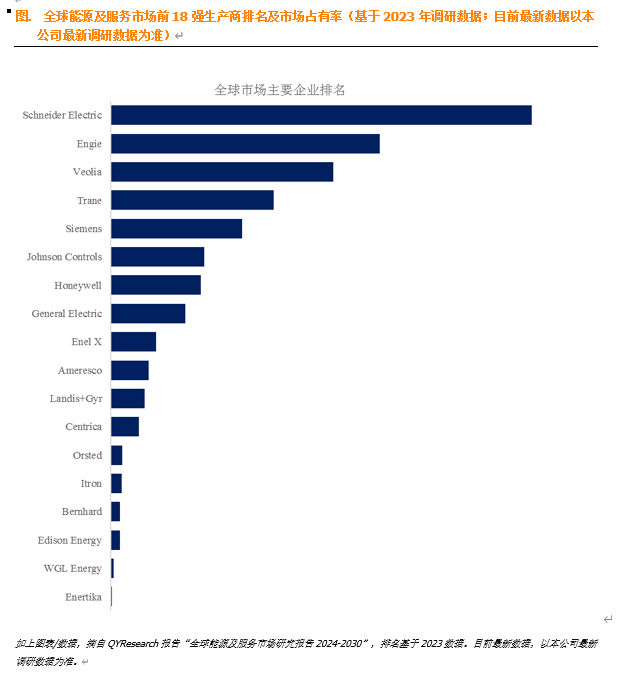 1. 全球领先企业- 主要生产商包括Schneider Electric、Engie、Veolia、Trane、Siemens、Johnson Controls、Honeywell、General Electric、Enel X、Ameresco等。