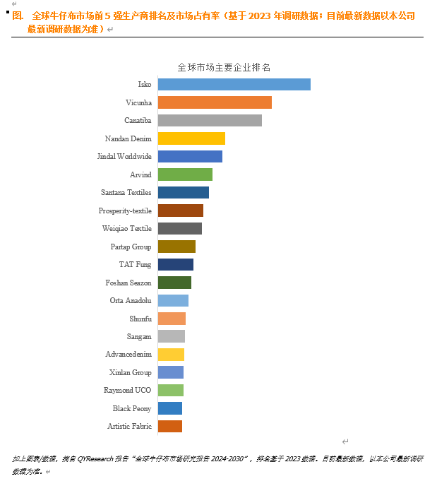 - 根据QYResearch的最新报告,预计2030年全球牛仔布市场规模将达到213.4亿美元,未来几年年复合增长率(CAGR)为5.1%。这表明牛仔布市场在未来几年内将保持稳健增长。