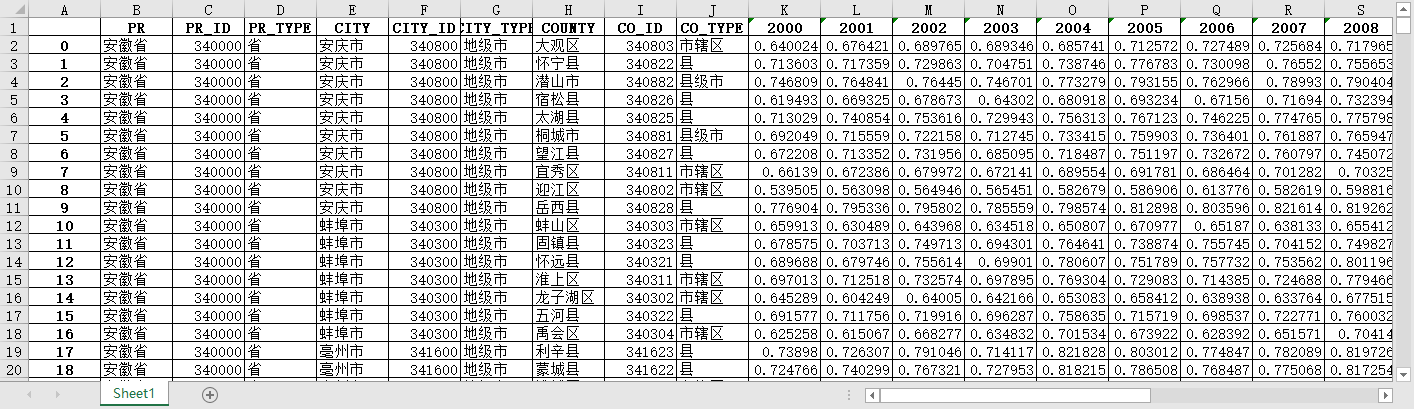 逐年NDVI 指数(归一化植被指数)各省市、地级市、区县等级数据