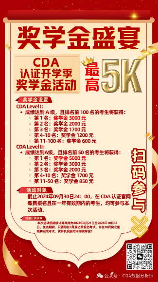 为了激励更多有志于数据分析领域的学子勇攀高峰,CDA 认证考试中心携手各授权合作伙伴,隆重推出“开学季奖学金活动”,为您的数据梦想插上翅膀!