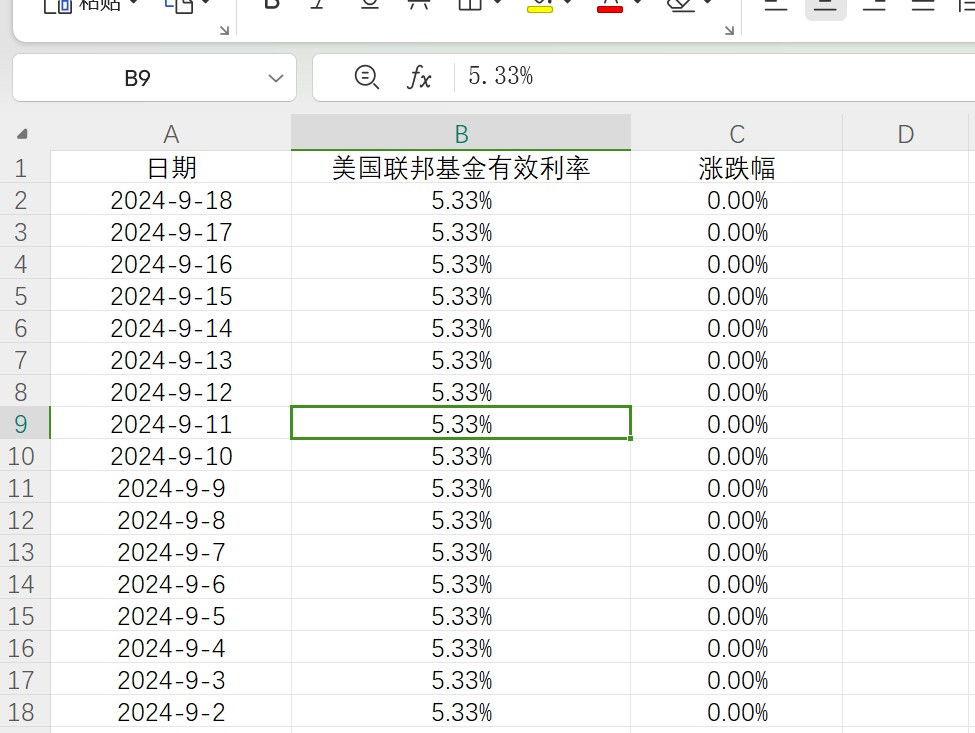 数据名称:美国联邦基金有效利率、目标利率历史数据