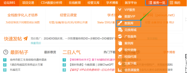 经管之家的VIP客户可通过首页“服务一览”——“数据库”