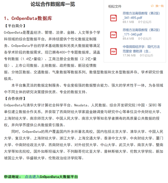进入“论坛合作数据库一览”介绍下方有专属链接进入CnOpenData大数据平台