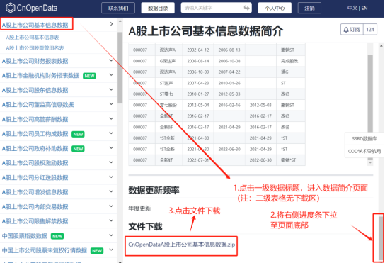5.点击数据库名称下拉至简介页底部进行下载,点击子表无下载区