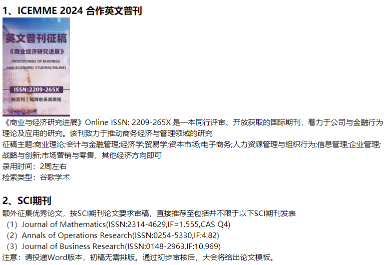 征稿主题比较热门,录用率也比较高,关于经济、管理、模型工程等主题均可收稿