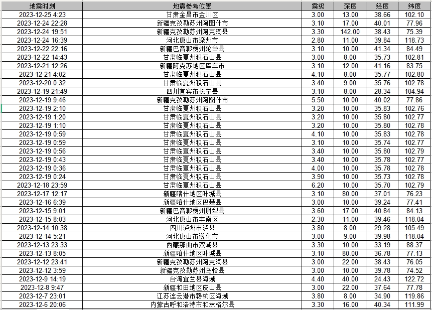 整理了2013-2023年国内地震相关数据,通过这些数据,可以了解以往发生地震的位置、震级和深度等信息,为研究地球的构造和板块运动等问题提供参考数据,更好地评估地震活动的规律和特征。