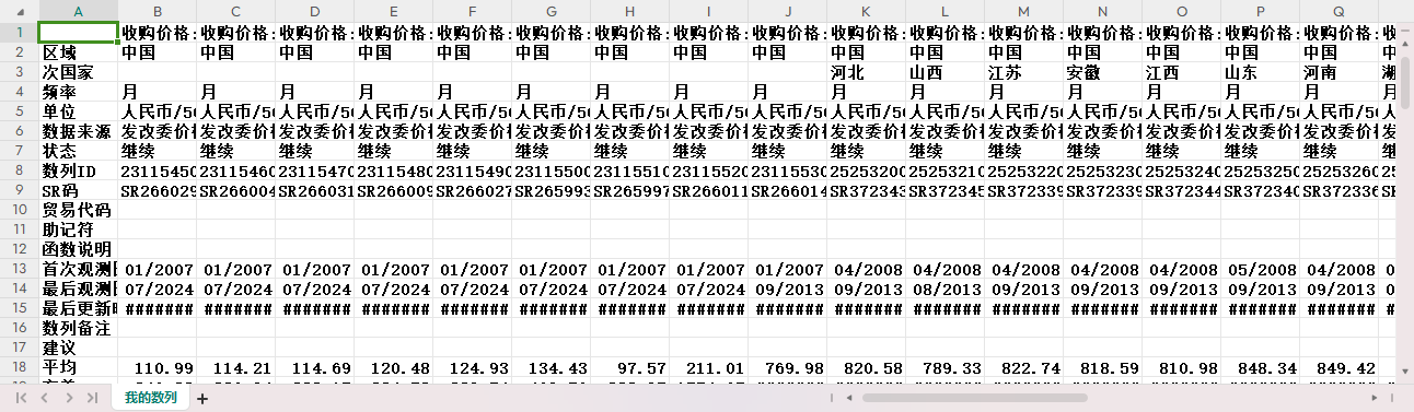 收购价格:不同等级粮食混合平均:红小麦 收购价格:不同等级粮食混合平均:白小麦 收购价格:不同等级粮食混合平均:混合麦 收购价格:不同等级粮食混合平均:早籼稻 收购价格:不同等级粮食混合平均:晚籼稻 收购价格:不同等级粮食混合平均:粳稻 收购价格:不同等级粮食混合平均:玉米 收购价格:不同等级粮食混合平均:大豆 收购价格:棉花实际收购:籽棉折合皮棉(328级) 收购价格:棉花实际收购:籽棉折合皮棉(328级):河北 收购价格:棉花实际收购:籽棉折合皮棉(328级):山西 收购价格:棉花实际收购:籽棉折合皮棉(328级):江苏 收购价格:棉花实际收购:籽棉折合皮棉(328级):安徽 收购价格:棉花实际收购:籽棉折合皮棉(328级):江西 收购价格:棉花实际收购:籽棉折合皮棉(328级):山东 收购价格:棉花实际收购:籽棉折合皮棉(328级):河南 收购价格:棉花实际收购:籽棉折合皮棉(328级):湖北 收购价格:棉花实际收购:籽棉折合皮棉(328级):湖南 收购价格:棉花实际收购:籽棉折合皮棉(328级):四川 收购价格:棉花实际收购:籽棉折合皮棉(328级):陕西 收购价格:棉花实际收购:籽棉折合皮棉(328级):甘肃 收购价格:棉花实际收购:籽棉折合皮棉(328级):新疆 收购价格:棉花实际收购:籽棉折合皮棉(229级) 收购价格:棉花实际收购:籽棉折合皮棉(229级):河北 收购价格:棉花实际收购:籽棉折合皮棉(229级):山西 收购价格:棉花实际收购:籽棉折合皮棉(229级):江苏 收购价格:棉花实际收购:籽棉折合皮棉(229级):安徽 收购价格:棉花实际收购:籽棉折合皮棉(229级):江西 收购价格:棉花实际收购:籽棉折合皮棉(229级):山东 收购价格:棉花实际收购:籽棉折合皮棉(229级):河南 收购价格:棉花实际收购:籽棉折合皮棉(229级):湖北 收购价格:棉花实际收购:籽棉折合皮棉(229级):湖南 收购价格:棉花实际收购:籽棉折合皮棉(229级):四川 收购价格:棉花实际收购:籽棉折合皮棉(229级):陕西 收购价格:棉花实际收购:籽棉折合皮棉(229级):甘肃 收购价格:棉花实际收购:籽棉折合皮棉(229级):新疆