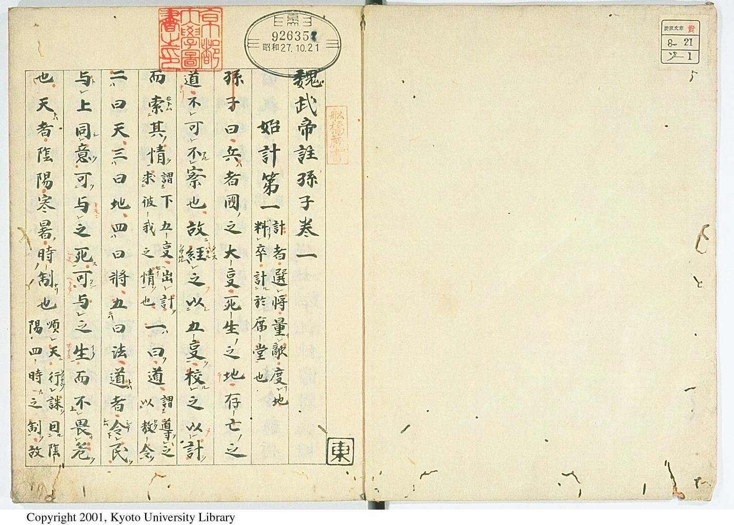 京都大学人文科学研究所所藏 曹操批注 孙子兵法