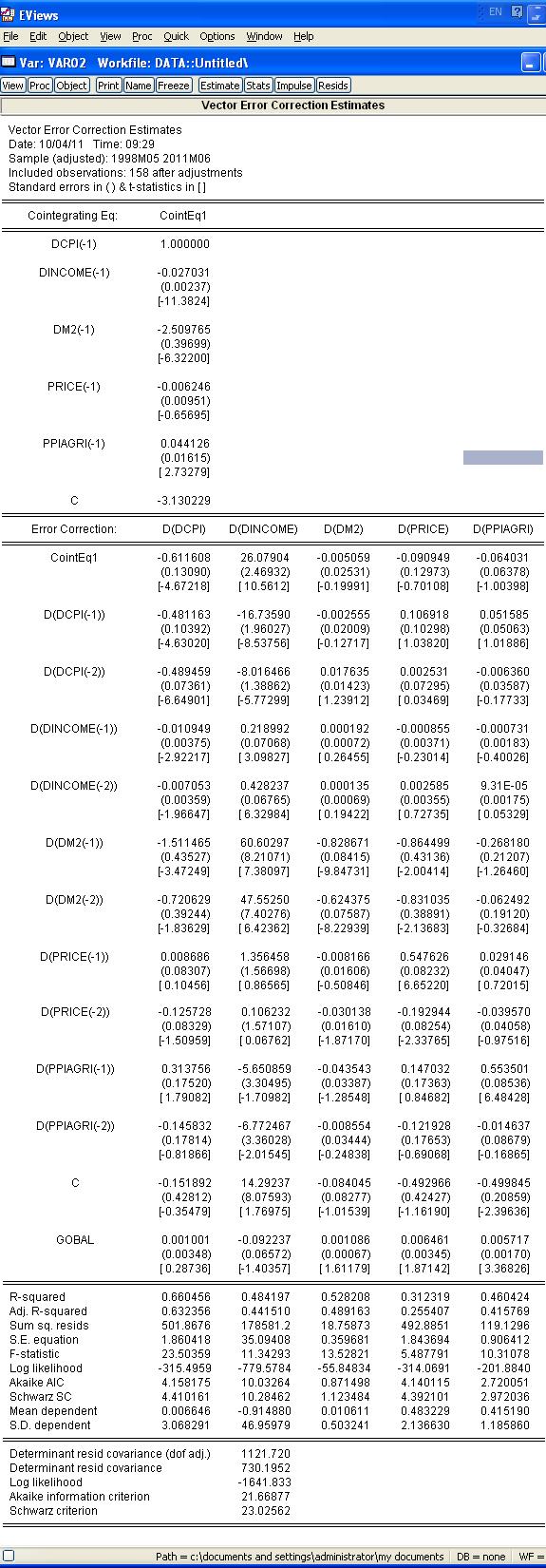 做了一个ECM,怎么看参数的显著性啊。方括号里是t值,怎么根据这些t值判断每个参数的显著性?请各位大侠指点