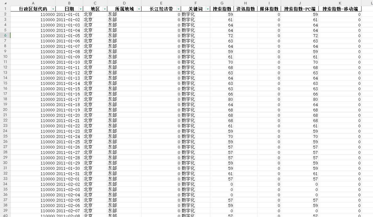 研究数字经济首先要衡量数字经济这个指标。关于数字经济(Dec)的测度,早在2014年欧盟便使用宽带接入、数字技术应用等五个一级指标和其所对应的31个二级指标对数字经济进行了测度,并公布了数字经济与社会指数用于反映数字经济的发展水平。近年来中国学者也采用了一系列方法对数字经济进行了测度。葛和平和吴福象(2021)运用熵权TOPSIS法,从发展环境、产业数字化、数字产业化与数字化治理四个维度对我国各省的数字经济进行了测度。皮皮侠团队参考黎新伍(2022)的做法,运用python整理了全国各省"数字经济"和"数字化"的百度指数、资讯指数、媒体指数,以衡量各地区的数字经济水平。