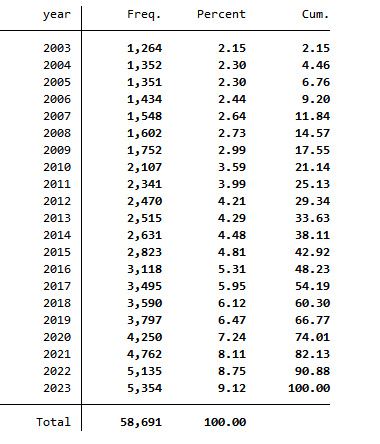 资料名称: 2023-2003年上市公司企业女性高管人数、女性高管占比数据)